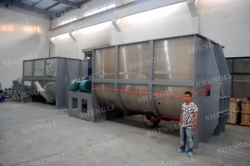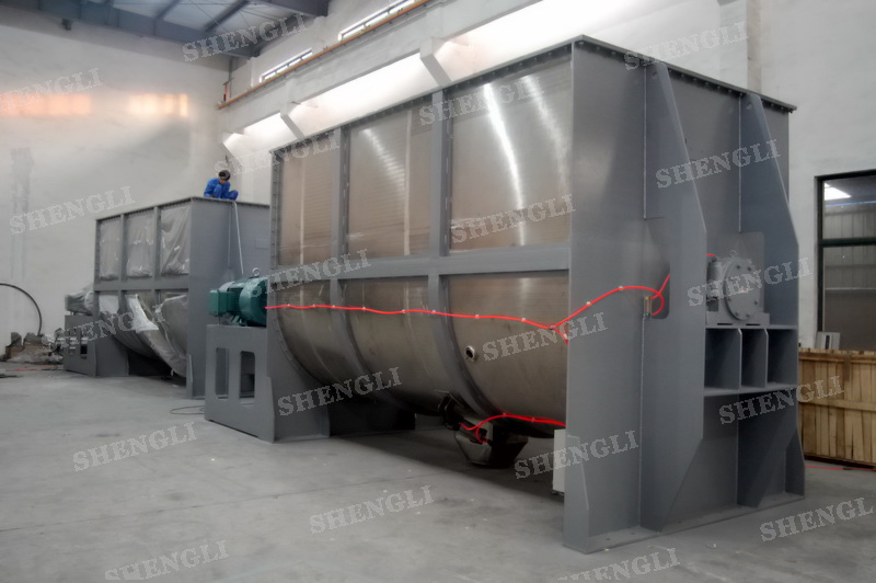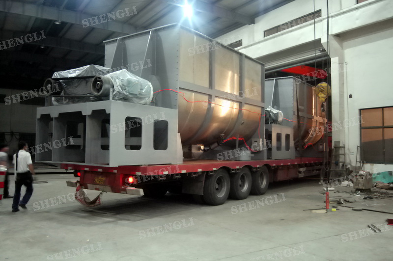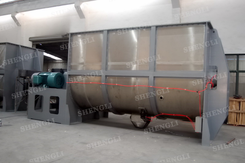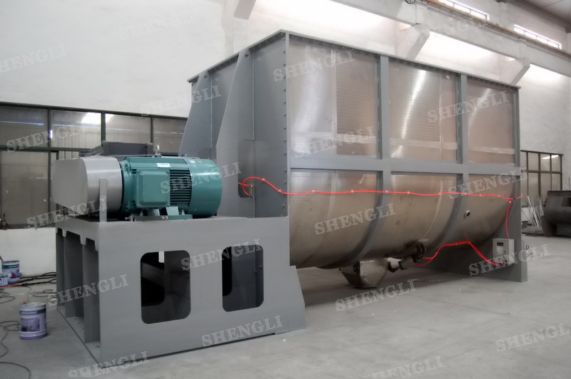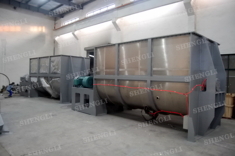 工作原理:螺帶混合設(shè)備采用U型筒體,內(nèi)裝平行主軸,主軸上安裝正反雙向的盤(pán)條螺帶,不同維度螺帶分內(nèi)螺帶與外螺帶,物料在螺帶的驅(qū)使下反復(fù)參混,能夠快速高效的混合。